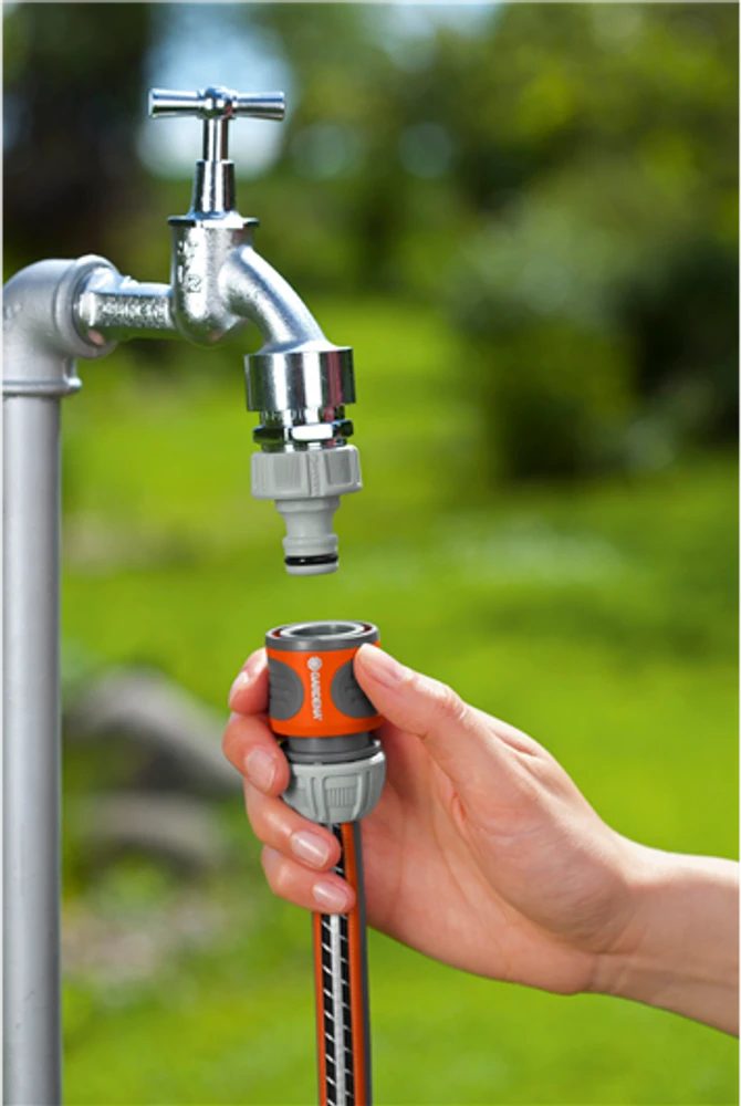 An important part of the Original GARDENA System, the Hose Connector allows fast and comfortable connection of the hose outlet. The garden hose can be easily connected to the tap and by a simple pull, the connection can be released.